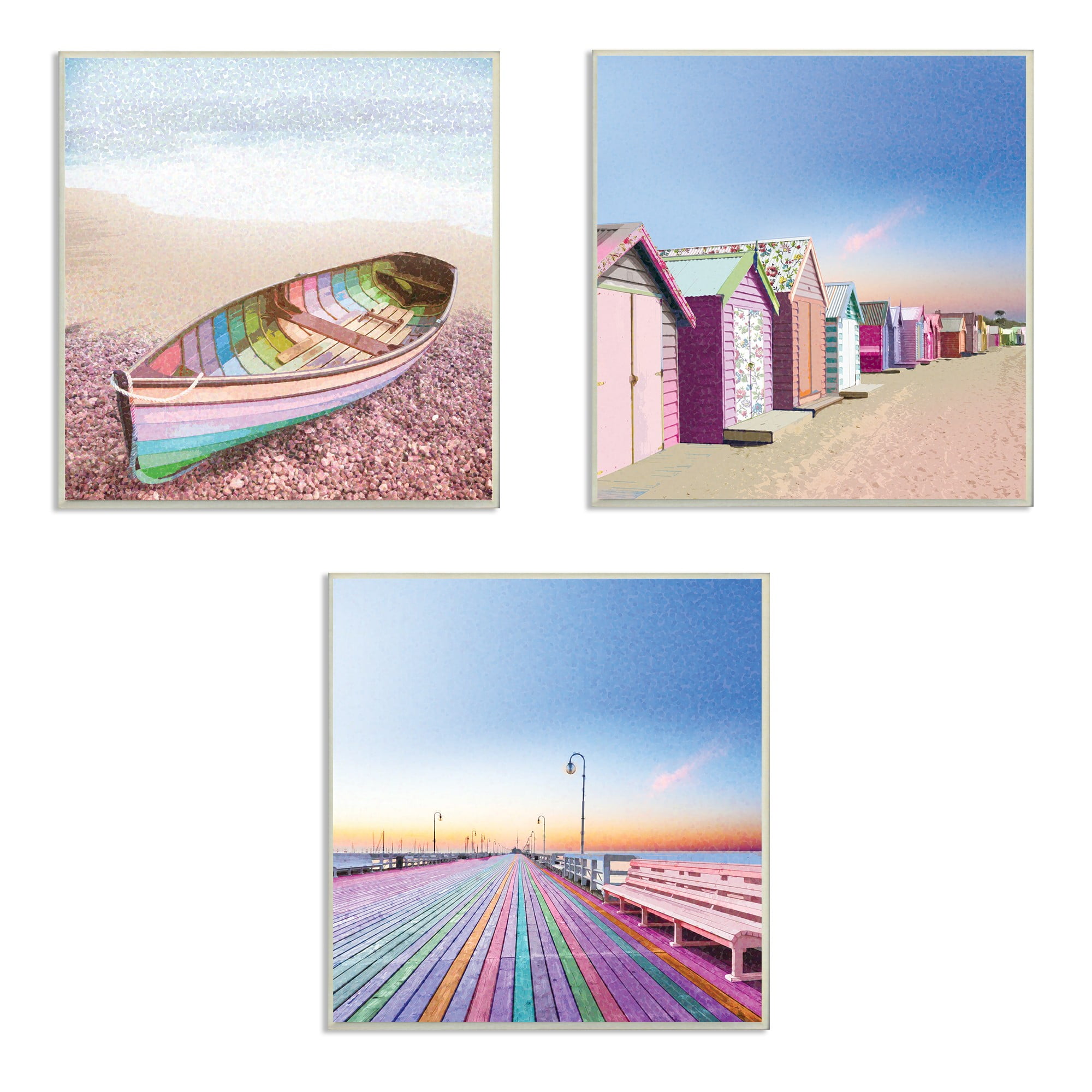 The Stupell Home Decor Collection Multi Color Pastel Wooden Row Boat 3pc Wall Plaque Art Set 12 X 0 5 X 12 Walmart Com