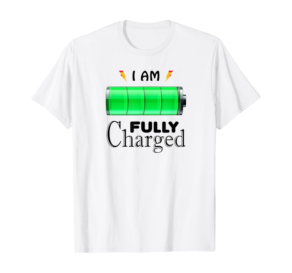 Amazon Com 100 Fully Charged Funny Nerd Battery Tshirt For Men Women Clothing Shoes Jewelry